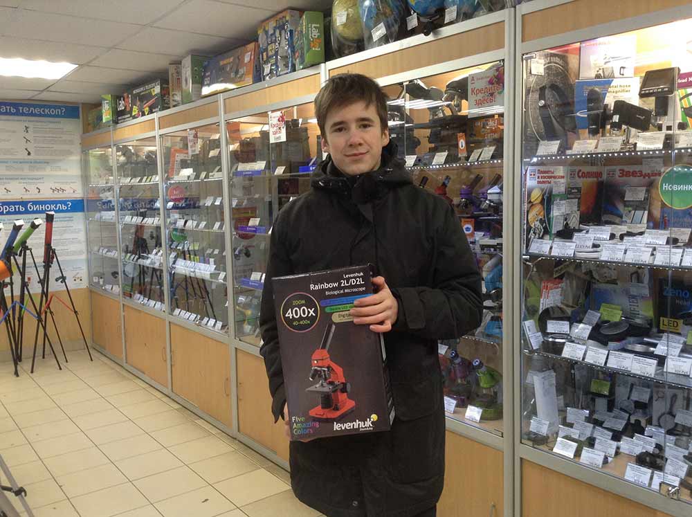 В своем видеоотчете Владимир показывает все этапы проводимых им экспериментов, подробно рассказывает о результатах и определяет самые успешные стратегии исследований. Сотрудники нашей компании поздравили Владимира с заслуженной победой и вручили приз – микроскоп Levenhuk Rainbow 2L .